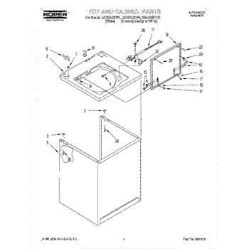 The Washer Lid Screw is an OEM part for Whirlpool washing machines. This 6-32 x .340 screw secures the washer lid to the hinge assembly, ensuring the lid opens and closes smoothly and stays securely in place during operation.