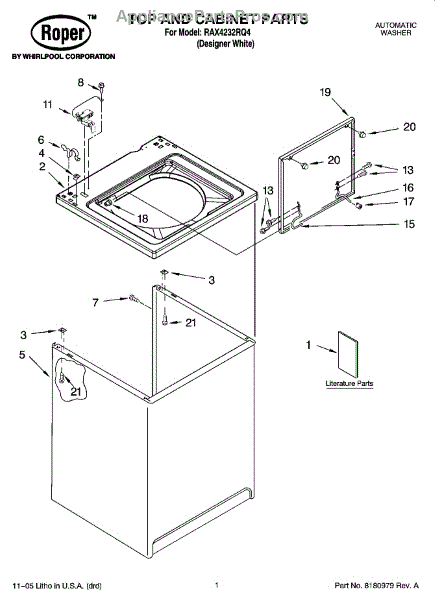 Parts for Roper RAX4232RQ4: 01 - Top And Cabinet Parts
