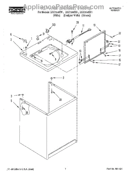 Parts for Roper RAX7244EQ1: 01 - Top & Cabinet Parts