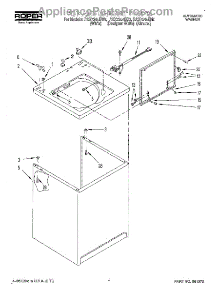 Parts for Roper RAX7244EW0: 01 - Top And Cabinet Parts