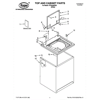 The Washer Lid Screw is an OEM part for Whirlpool washing machines. This 6-32 x .340 screw secures the washer lid to the hinge assembly, ensuring the lid opens and closes smoothly and stays securely in place during operation.
