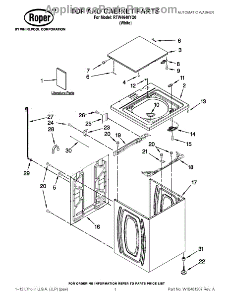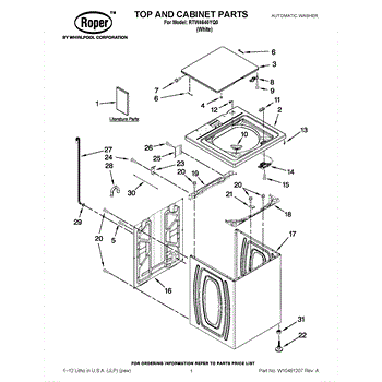 Parts for Roper RTW4640YQ0: 01 - Top And Cabinet Parts