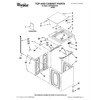 The Washer Lid Screw is an OEM part for Whirlpool washing machines. This 6-32 x .340 screw secures the washer lid to the hinge assembly, ensuring the lid opens and closes smoothly and stays securely in place during operation.