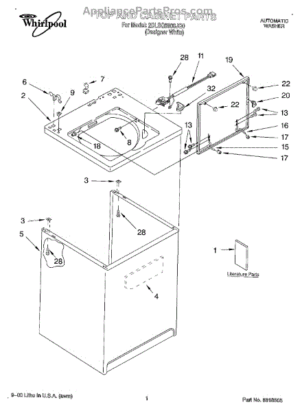 Repair manual for top loading automatic direct drive washing machines made by Whirlpool. Covered brands include Whirlpool, Sears, Kenmore, Kitchen Aid, Roper, and Estate. Easy to follow photographs and step-by-step repair procedures.