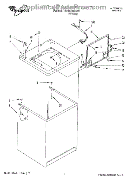 The Washer Lid Screw is an OEM part for Whirlpool washing machines. This 6-32 x .340 screw secures the washer lid to the hinge assembly, ensuring the lid opens and closes smoothly and stays securely in place during operation.