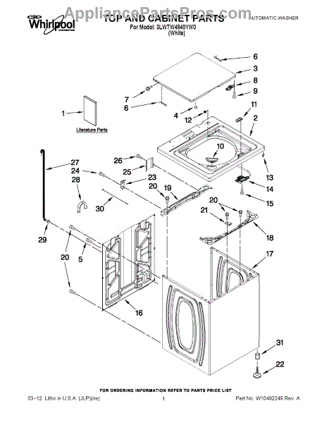 Parts for Whirlpool 3LWTW4840YW0: 01 - Top And Cabinet Parts