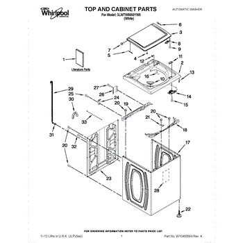 The Washer Lid Screw is an OEM part for Whirlpool washing machines. This 6-32 x .340 screw secures the washer lid to the hinge assembly, ensuring the lid opens and closes smoothly and stays securely in place during operation.