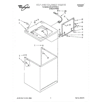 The Washer Lid Screw is an OEM part for Whirlpool washing machines. This 6-32 x .340 screw secures the washer lid to the hinge assembly, ensuring the lid opens and closes smoothly and stays securely in place during operation.