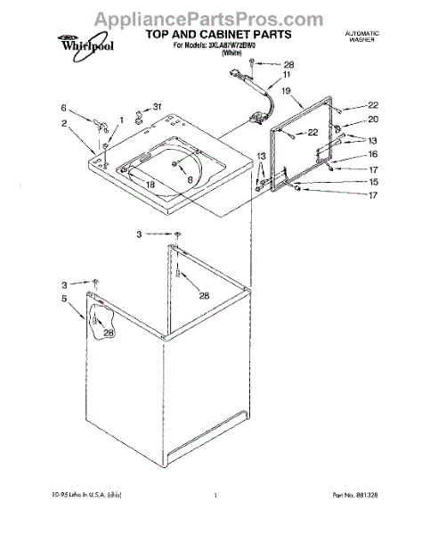 Used to lock washer cabinet to rear wall of washer.
