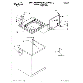 The Washer Lid Screw is an OEM part for Whirlpool washing machines. This 6-32 x .340 screw secures the washer lid to the hinge assembly, ensuring the lid opens and closes smoothly and stays securely in place during operation.