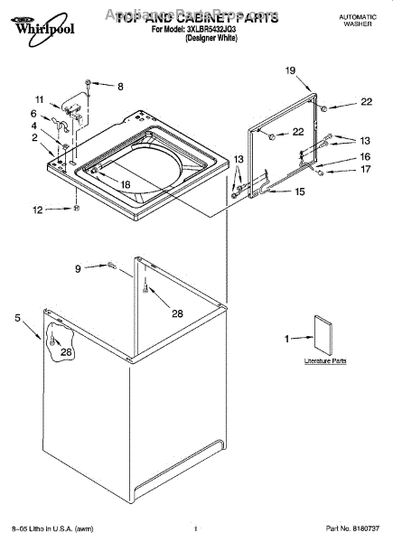 Parts for Whirlpool 3XLBR5432JQ3: 01 - Top And Cabinet Parts
