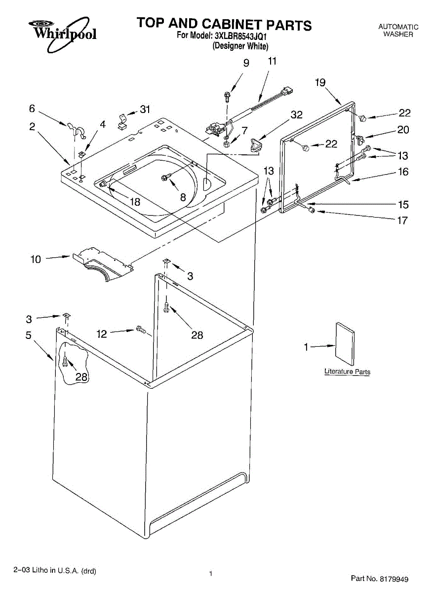 The Washer Lid Screw is an OEM part for Whirlpool washing machines. This 6-32 x .340 screw secures the washer lid to the hinge assembly, ensuring the lid opens and closes smoothly and stays securely in place during operation.
