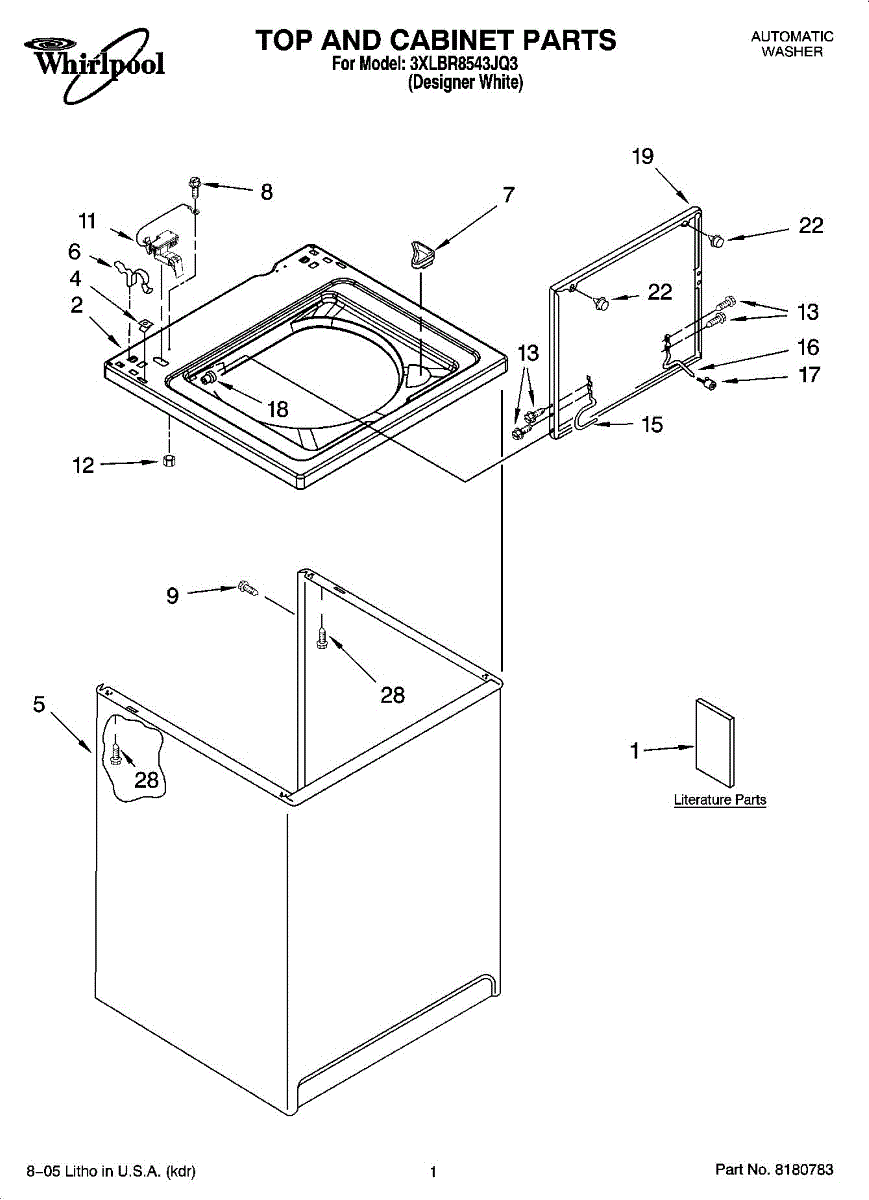 Parts for Whirlpool 3XLBR8543JQ3: 01 - Top And Cabinet Parts