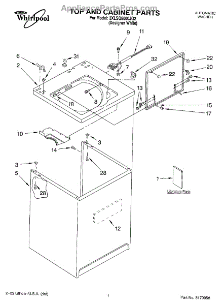 Parts for Whirlpool 3XLSQ8000JQ2: 01 - Top And Cabinet Parts