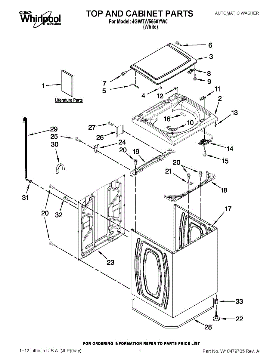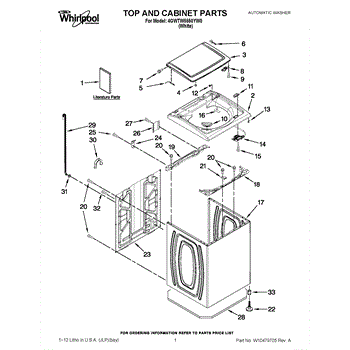 The Washer Lid Screw is an OEM part for Whirlpool washing machines. This 6-32 x .340 screw secures the washer lid to the hinge assembly, ensuring the lid opens and closes smoothly and stays securely in place during operation.
