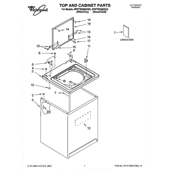 Parts for Whirlpool 4PWTW5905SW0: 01 - Top And Cabinet Parts