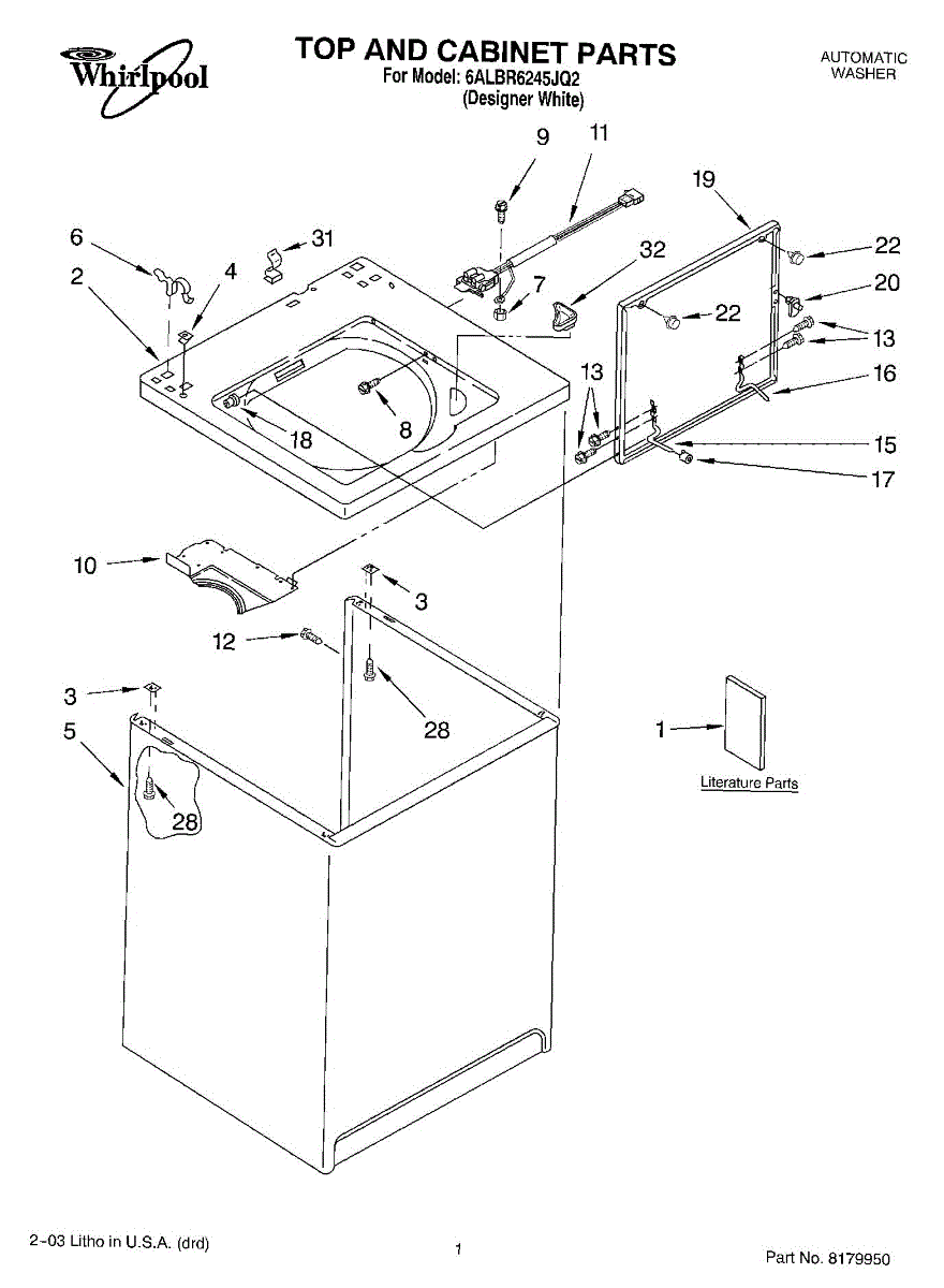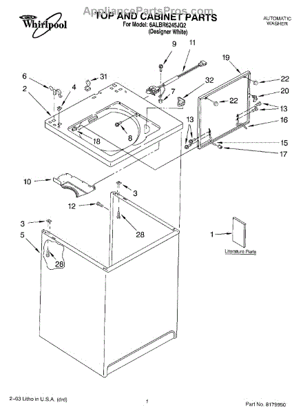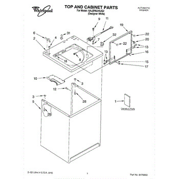 The Washer Lid Screw is an OEM part for Whirlpool washing machines. This 6-32 x .340 screw secures the washer lid to the hinge assembly, ensuring the lid opens and closes smoothly and stays securely in place during operation.