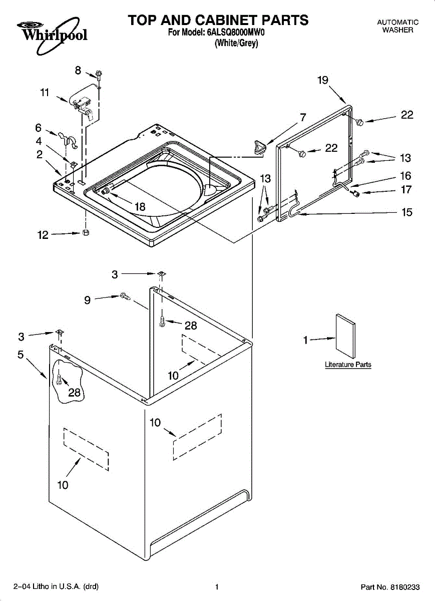 Parts for Whirlpool 6ALSQ8000MW0: 01 - Top And Cabinet Parts