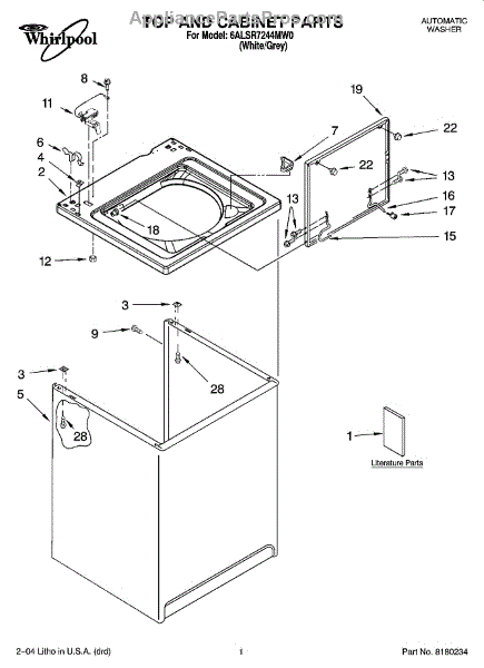 Parts for Whirlpool 6ALSR7244MW0: 01 - Top And Cabinet Parts