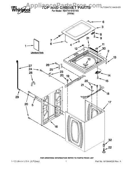This glass top lid assembly replaces a damaged or worn washer lid to restore a flat, sealed top surface and maintain safe operation. It provides a clear, durable cover that protects internal components and helps keep laundry area clean. What it does: