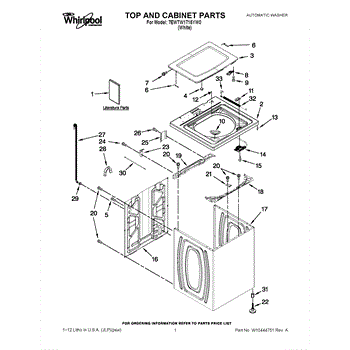 The Washer Lid Screw is an OEM part for Whirlpool washing machines. This 6-32 x .340 screw secures the washer lid to the hinge assembly, ensuring the lid opens and closes smoothly and stays securely in place during operation.