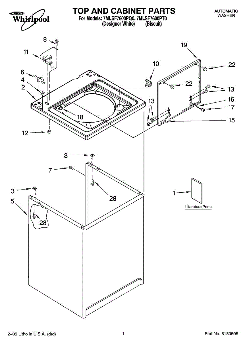 Used to lock washer cabinet to rear wall of washer.