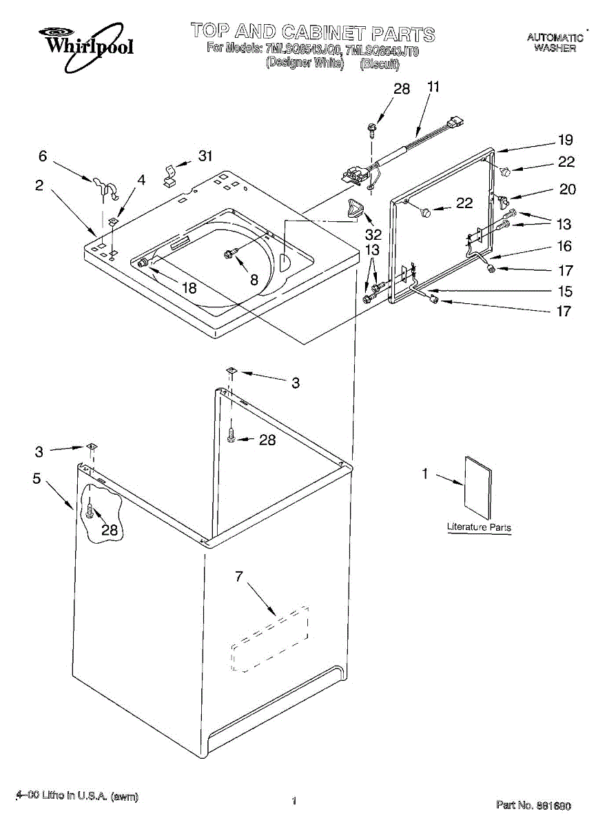 The Washer Lid Screw is an OEM part for Whirlpool washing machines. This 6-32 x .340 screw secures the washer lid to the hinge assembly, ensuring the lid opens and closes smoothly and stays securely in place during operation.