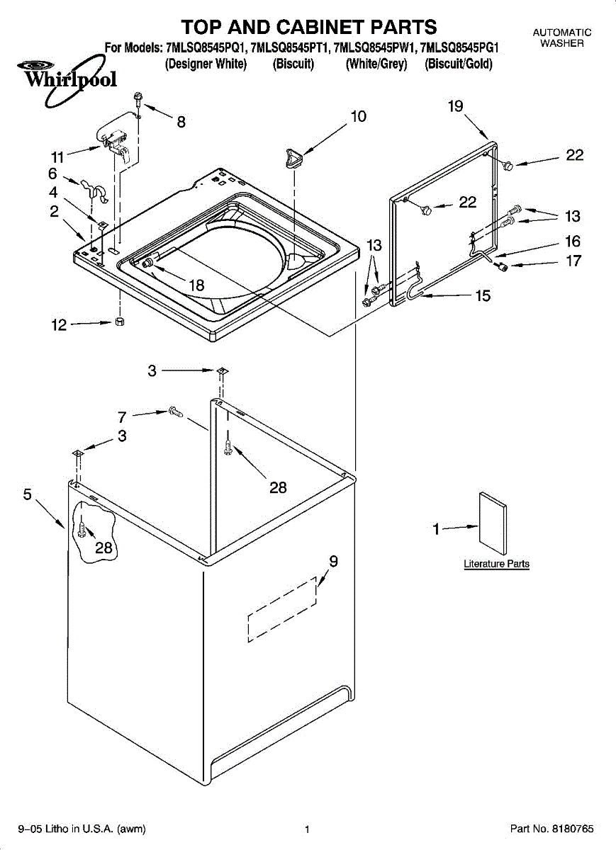 Used to lock washer cabinet to rear wall of washer.