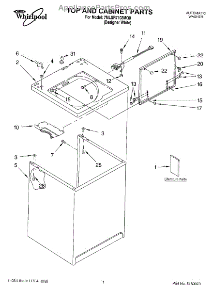 Repair manual for top loading automatic direct drive washing machines made by Whirlpool. Covered brands include Whirlpool, Sears, Kenmore, Kitchen Aid, Roper, and Estate. Easy to follow photographs and step-by-step repair procedures.