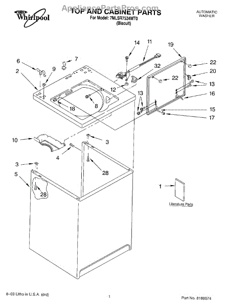 Parts for Whirlpool 7MLSR7534MT0: 01 - Top And Cabinet Parts
