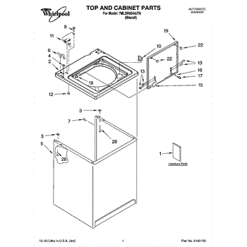 The Washer Lid Screw is an OEM part for Whirlpool washing machines. This 6-32 x .340 screw secures the washer lid to the hinge assembly, ensuring the lid opens and closes smoothly and stays securely in place during operation.