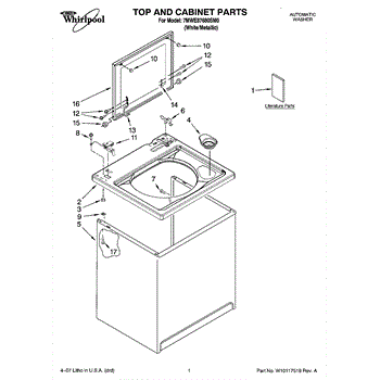 The Washer Lid Screw is an OEM part for Whirlpool washing machines. This 6-32 x .340 screw secures the washer lid to the hinge assembly, ensuring the lid opens and closes smoothly and stays securely in place during operation.