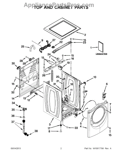 The Drain Hose is an OEM replacement part for Whirlpool washing machines. Located at the rear base of the unit, this flexible vinyl hose routes wash water out of the tub and to household drainage pipes. Causes involve regular flexing weakening hose material integrity over many years. Mineral buildups may also restrict water flow within. Symptoms of a problematic drain hose include: