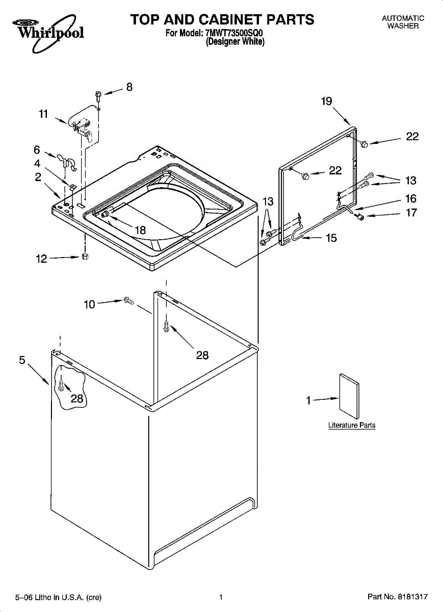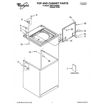 The Washer Lid Screw is an OEM part for Whirlpool washing machines. This 6-32 x .340 screw secures the washer lid to the hinge assembly, ensuring the lid opens and closes smoothly and stays securely in place during operation.