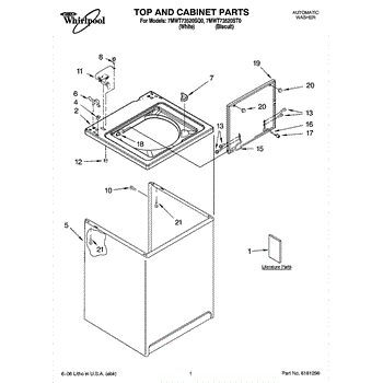 Parts for Whirlpool 7MWT73520SQ0: 01 - Top And Cabinet Parts