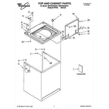 The Washer Lid Screw is an OEM part for Whirlpool washing machines. This 6-32 x .340 screw secures the washer lid to the hinge assembly, ensuring the lid opens and closes smoothly and stays securely in place during operation.