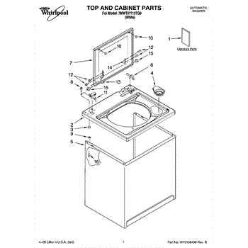 The Washer Lid Screw is an OEM part for Whirlpool washing machines. This 6-32 x .340 screw secures the washer lid to the hinge assembly, ensuring the lid opens and closes smoothly and stays securely in place during operation.