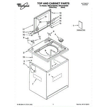 The Washer Lid Screw is an OEM part for Whirlpool washing machines. This 6-32 x .340 screw secures the washer lid to the hinge assembly, ensuring the lid opens and closes smoothly and stays securely in place during operation.