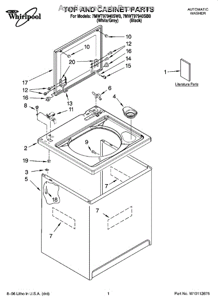 Parts for Whirlpool 7MWT97940SW0: 01 - Top And Cabinet Parts