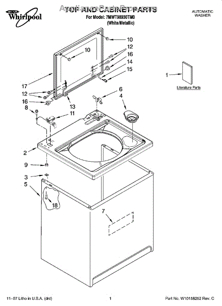 The Whirlpool spacer is an OEM replacement part responsible for maintaining the proper spacing and alignment between the washer cabinet and the top panel. The spacer provides stability and support to the appliance. It ensures that the top panel is securely attached and evenly distributed, preventing any misalignment or instability during operation.