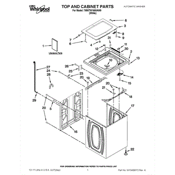 This glass top lid assembly replaces a damaged or worn washer lid to restore a flat, sealed top surface and maintain safe operation. It provides a clear, durable cover that protects internal components and helps keep laundry area clean. What it does: