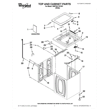 The Washer Lid Screw is an OEM part for Whirlpool washing machines. This 6-32 x .340 screw secures the washer lid to the hinge assembly, ensuring the lid opens and closes smoothly and stays securely in place during operation.
