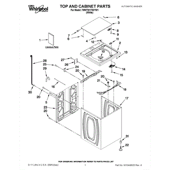 The Washer Lid Screw is an OEM part for Whirlpool washing machines. This 6-32 x .340 screw secures the washer lid to the hinge assembly, ensuring the lid opens and closes smoothly and stays securely in place during operation.