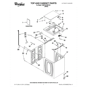 The Washer Lid Screw is an OEM part for Whirlpool washing machines. This 6-32 x .340 screw secures the washer lid to the hinge assembly, ensuring the lid opens and closes smoothly and stays securely in place during operation.