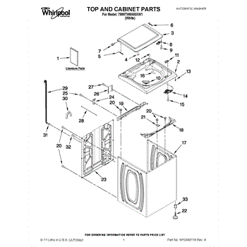 The Washer Lid Screw is an OEM part for Whirlpool washing machines. This 6-32 x .340 screw secures the washer lid to the hinge assembly, ensuring the lid opens and closes smoothly and stays securely in place during operation.