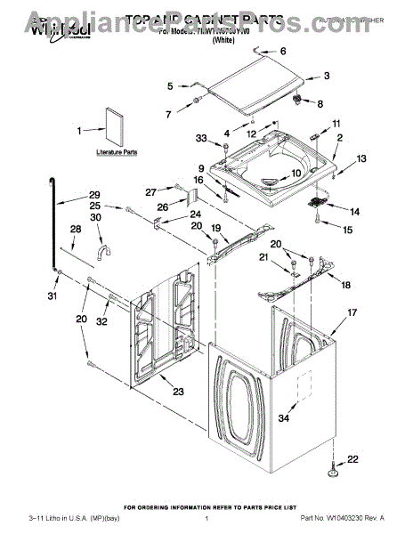 This complete lid assembly replaces a cracked, bent, or missing washer lid so the top-load tub can be securely covered and the appliance can safely operate. Restores a proper closure and helps prevent splashes and loose items from falling out. What it does: