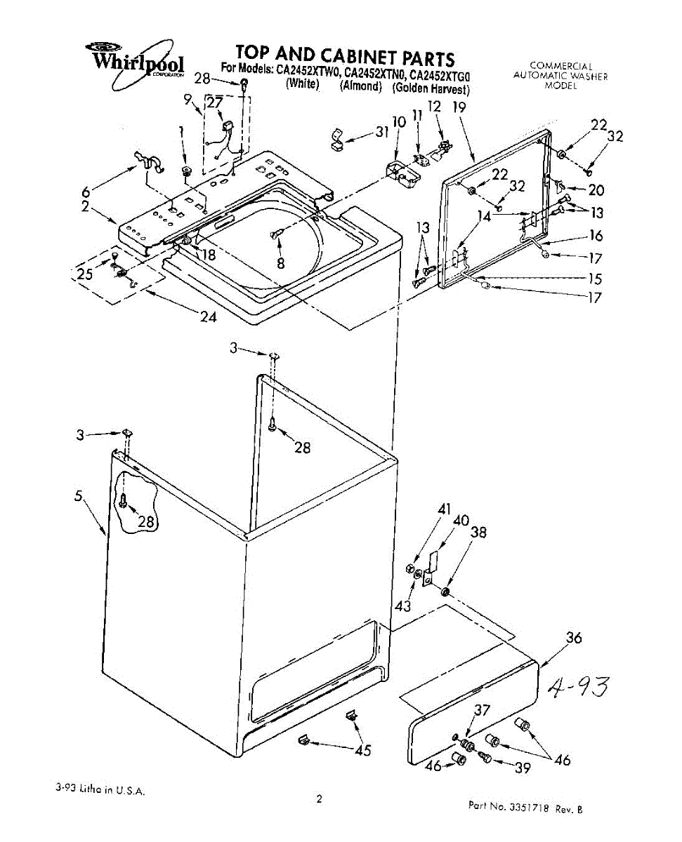 Washer lid panel that covers the top opening of your washing machine. Replace if your original lid is cracked, broken, warped, or missing its hinge mounts.