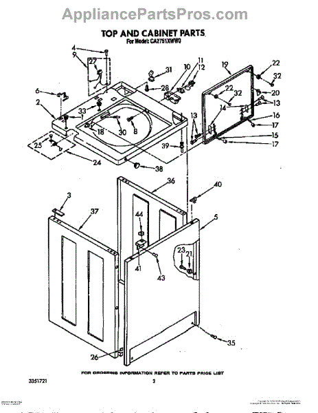 Parts for Whirlpool CA2751XWW0: 02 - Top And Cabinet, Lit / Optional Parts