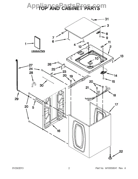 This cabinet is the main outer housing that supports and protects the appliance's internal components while giving the unit its finished exterior. It restores structural integrity and proper panel alignment for safe, reliable operation. What it does:
