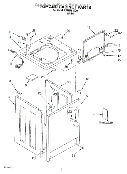 Parts for Whirlpool CAM2761KQ0: 02 - Top And Cabinet, Literature Parts